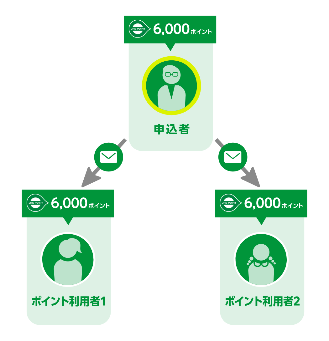 ポイント利用者が2人以上いる場合は、申込者から他の利用者に対して手続きURLを送ってください。